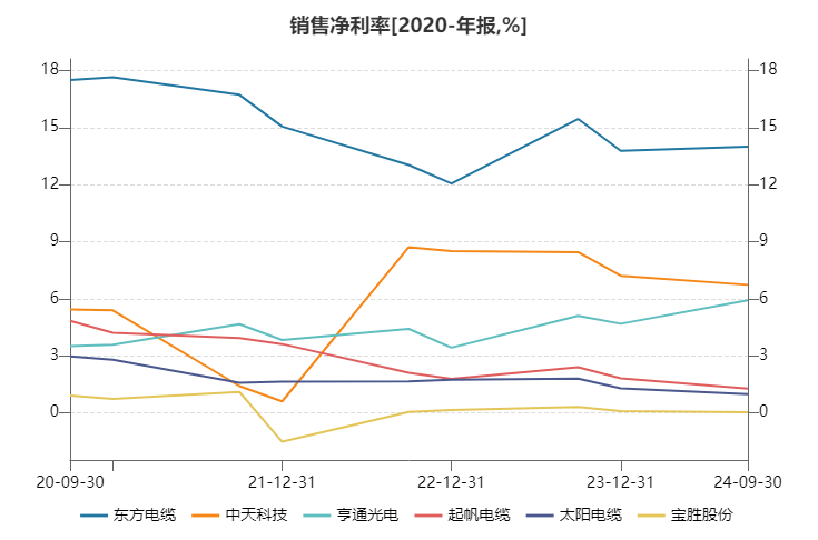 净利率也暴涌现沟通的分化景象。东方电缆的净利率终年高于12%,中天科技与亨通光电近期净利率也在4-7%傍边耽搁,而另外三家则捏续恼恨,净利率在3%以下,其中宝胜股份还在盈亏点捏续试探。