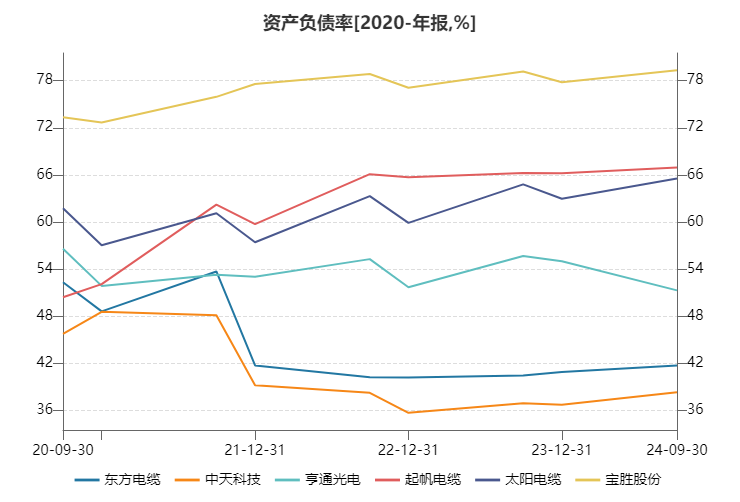 在苍劲盈利才气的加捏下,三家龙头企业的外源融资需求较小,钞票欠债率主张细腻。东方电缆和中天科技连年欠债率均在42%以下,亨通光电钞票欠债率略高,在54%傍边。而起帆电缆、太阳电缆、宝胜股份三家则处于60%以上,且仍处于赞助态势。