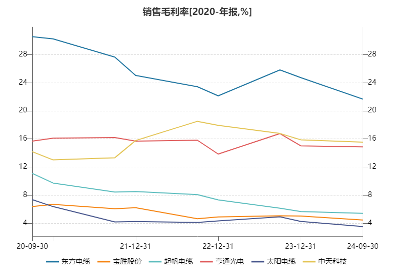 此外,凭证海风需求短期看花式招标及开工进程、中期看投资经济性、恒久看政府联想的逻辑不雅点,“双三十”战术下阛阓需要更高电压等第、更优本事蹊径的客不雅身分未发生变化,沿海城市“十四五”时代海优势电联想预测装机范围也跨越50GW。海缆近期低迷梗概仅仅补贴战术切换导致装机节拍前移而引发的阶段性需求荒,其成长性的底层逻辑并未发生太大变化。 龙头企业盈利才气罕见 自后者依赖高本钱盘活率打平 从里面格式来看,海缆行业的干预门槛拉开了老牌电缆厂商与新干预者的事迹差距。 据天风证券论说,海缆的高本事条目使其比陆上高压电缆多出40%的工艺经由,所需研发周期也较长,比如东方电缆500kV海缆的研发周期约为3年。此外,研发出的海缆还需要履历型式考验和预破坏考验,一般需要1年以上时刻。海缆需要船埠及专用海缆敷设船进走时载的特点也导致海缆基地的缔造周期较长,一般在2年以上。 另外,海缆故障不同于风机等其他风电开导故障,其并不仅仅导致单台风机停运,而很可能影响整个风电场的电力运载,海缆敷设海底的物理形态也决定了其维修难度及成本较高。以上身分导致业主时常探究花式恒久经济性而非单纯探究报价,历史工程事迹成为蹙迫的评估主张。 因此,海缆从研发、取得禀赋、基地产能爬坡、到居品性量最终取得本色花式认证需要极长的周期,行业先发优势显着。 东方电缆、中天科技(维权)、亨通光电当作成就于90年代的老牌电缆企业,在二十一生纪初便已开启海底线缆的研发。罢了2024年中旬,能分娩330kV/500kV交流海缆及柔直海缆且有事迹背书的仅有这三家企业。据各大券商统计数据,三家企业终年占据海缆行业80%-90%的阛阓份额。 先发优势使三家企业的盈利才气远超同行。东方电缆毛利率终年运转在20%以上,中天科技与亨通光电毛利率也在12%以上耽搁且保捏坚挺,而另外三家起帆电缆、宝胜股份(维权)、太阳电缆毛利率在行业压力下安宁走低,近期已达到8%以下。