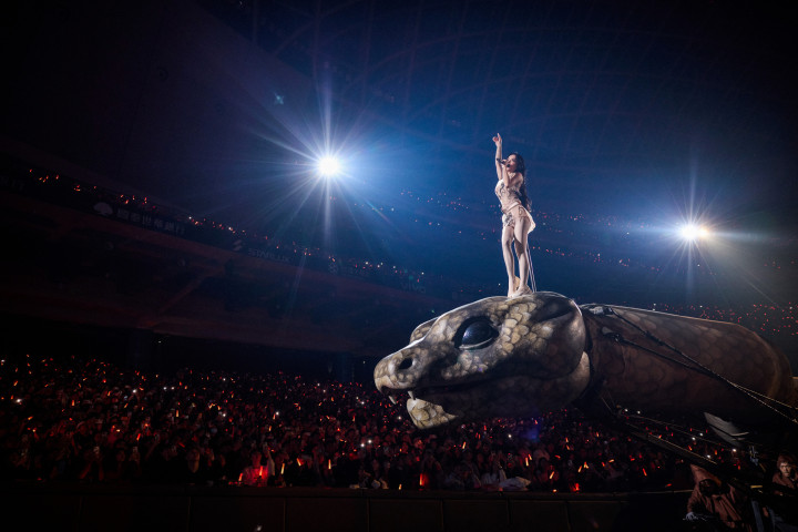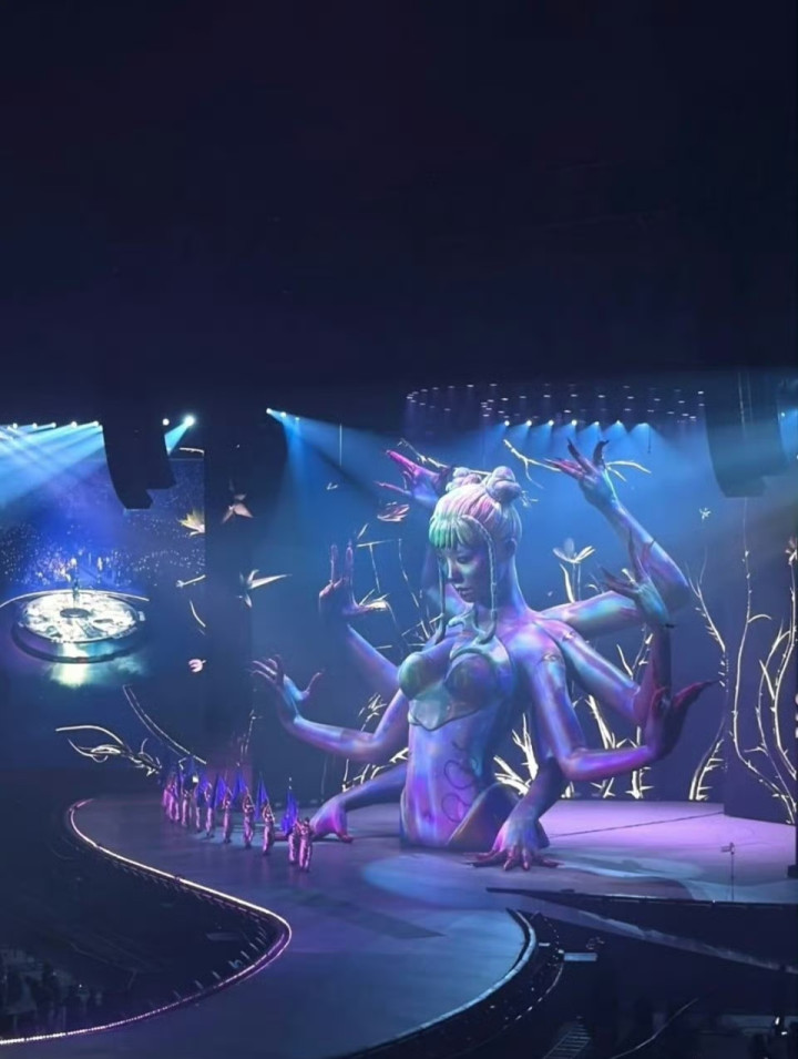 粉丝与业内盛赞演唱会是“华语天花板级制作”:舞台以15世纪名画《东说念主间乐土》为灵感,会通敦煌瑞兽、女娲听说等东方元素,机械蛇需多东说念主精密操控,技能难度创记录。