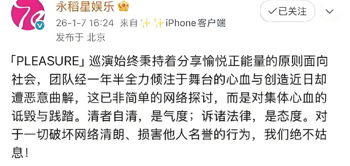 03 蔡依林责任室及垄断方于1月7日发布《严正声明》,点名博主“斯利亚”等账号“以文害辞、坏心数落”,已固定凭证并首先法律关节。强调设想理念为“有计划东说念主性理想”,非遗爬竿是传统文化立异。