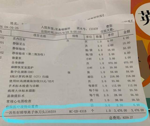 先厘清事实:这笔近4000元的用度,并非等闲手术刀,而是低温等离子刀头,属于一次性入口医用高值耗材,价钱确乎居高不下。从医学角度看,它并非毫无价值,比较传统手术器械,这种刀头能竣事精着实割,术中出血量极小,能裁汰手术风险,减少患者创伤,加速术后还原,在临床手术中确乎有不可替代的上风。且按照有关次序,若该耗材属于私费神志,必须提前见知患者并取得署名说明后方可使用;若纳入医保报销范围,则无需患者特等署名。院方所言“用度属实、有规可依”,单从价钱和时期层面,似乎站得住脚。况兼这种刀头在寰宇任何一个县城也好,地级市也罢,皆未便宜起步皆在两三千元。